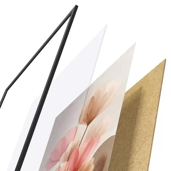 A poszter keretből, plexiből, nyomtatott képből és forgácslap hátlapból áll. A poszter a hátoldalon található rögzítőknek köszönhetően azonnal felakasztható a falra.