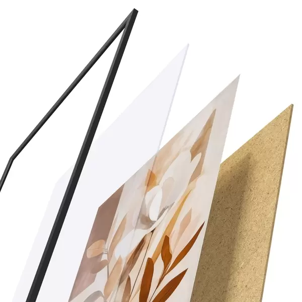 A poszter keretből, plexiből, nyomtatott képből és forgácslap hátlapból áll. A poszter a hátoldalon található rögzítőknek köszönhetően azonnal felakasztható a falra.