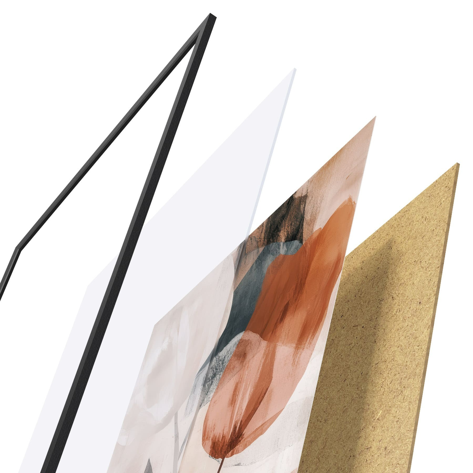 A poszter keretből, plexiből, nyomtatott képből és forgácslap hátlapból áll. A poszter a hátoldalon található rögzítőknek köszönhetően azonnal felakasztható a falra.