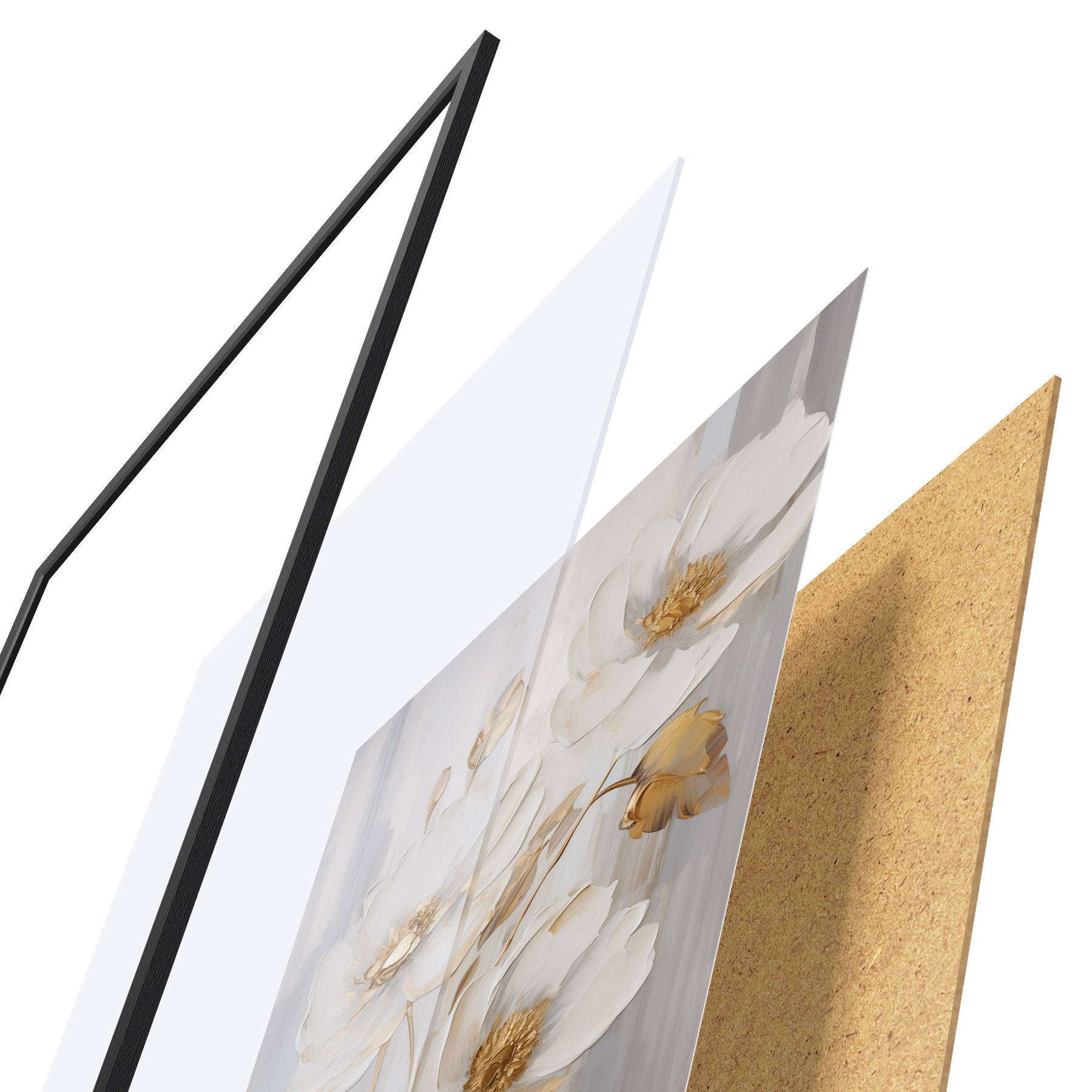 A poszter keretből, plexiből, nyomtatott képből és forgácslap hátlapból áll. A poszter a hátoldalon található rögzítőknek köszönhetően azonnal felakasztható a falra.