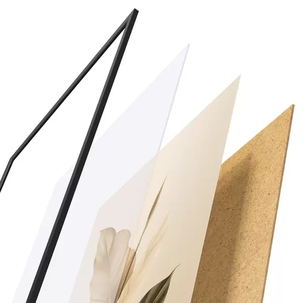 A poszter keretből, plexiből, nyomtatott képből és forgácslap hátlapból áll. A poszter a hátoldalon található rögzítőknek köszönhetően azonnal felakasztható a falra.