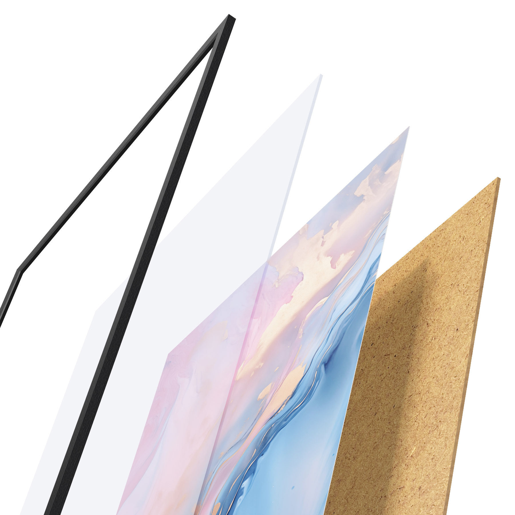 A poszter keretből, plexiből, nyomtatott képből és forgácslap hátlapból áll. A poszter a hátoldalon található rögzítőknek köszönhetően azonnal felakasztható a falra.