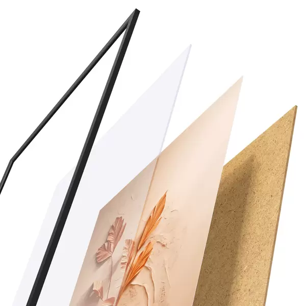 A poszter keretből, plexiből, nyomtatott képből és forgácslap hátlapból áll. A poszter a hátoldalon található rögzítőknek köszönhetően azonnal felakasztható a falra.