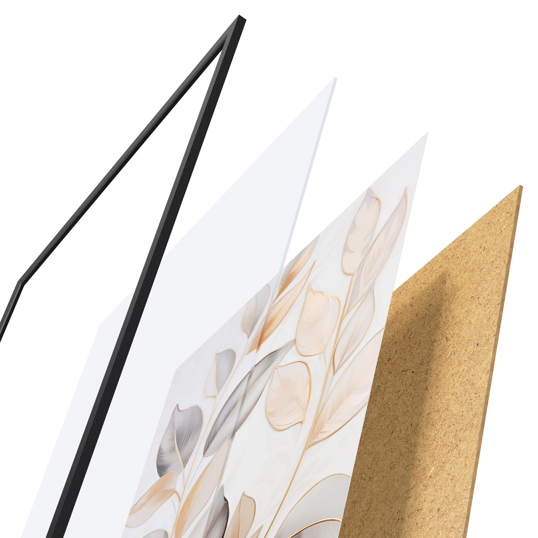 A poszter keretből, plexiből, nyomtatott képből és forgácslap hátlapból áll. A poszter a hátoldalon található rögzítőknek köszönhetően azonnal felakasztható a falra.