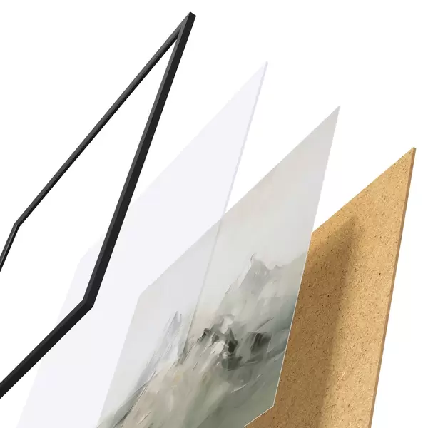 A poszter keretből, plexiből, nyomtatott képből és forgácslap hátlapból áll. A poszter a hátoldalon található rögzítőknek köszönhetően azonnal felakasztható a falra.