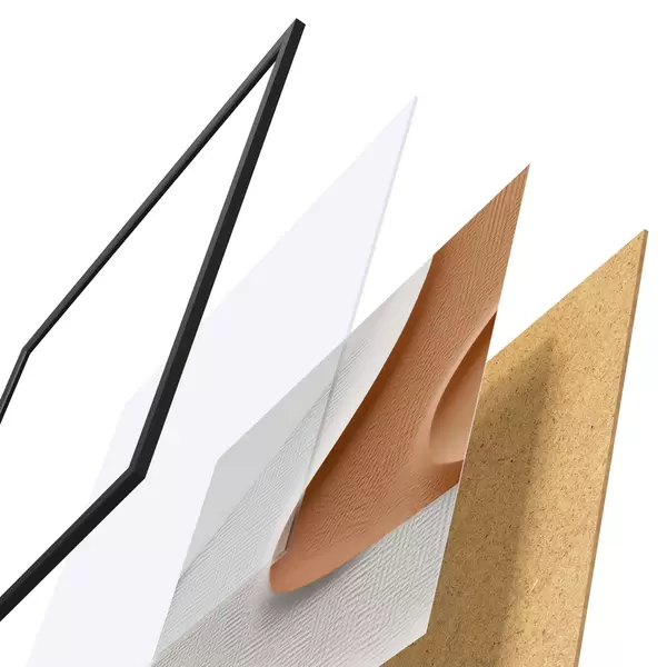 A poszter keretből, plexiből, nyomtatott képből és forgácslap hátlapból áll. A poszter a hátoldalon található rögzítőknek köszönhetően azonnal felakasztható a falra.