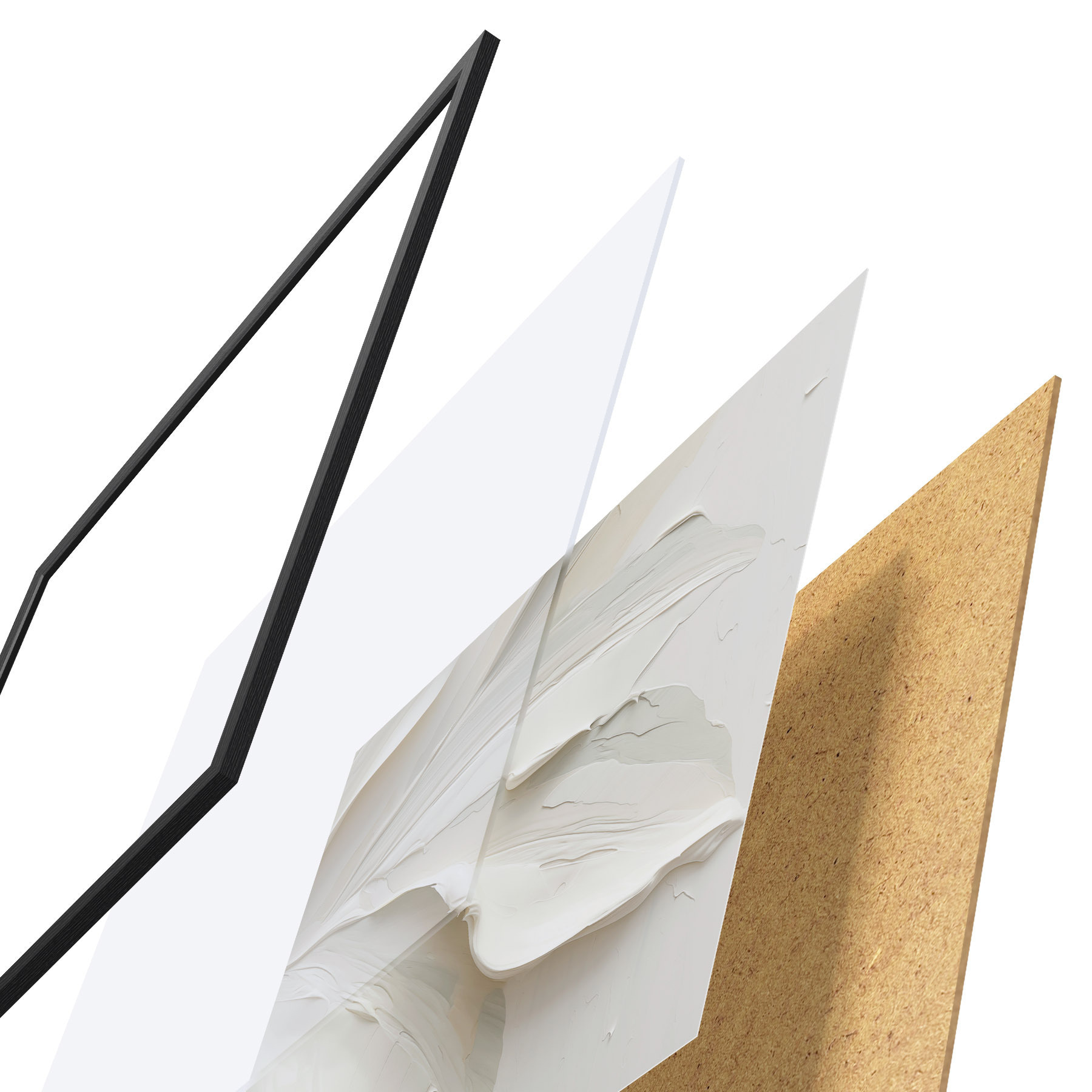 A poszter keretből, plexiből, nyomtatott képből és forgácslap hátlapból áll. A poszter a hátoldalon található rögzítőknek köszönhetően azonnal felakasztható a falra.