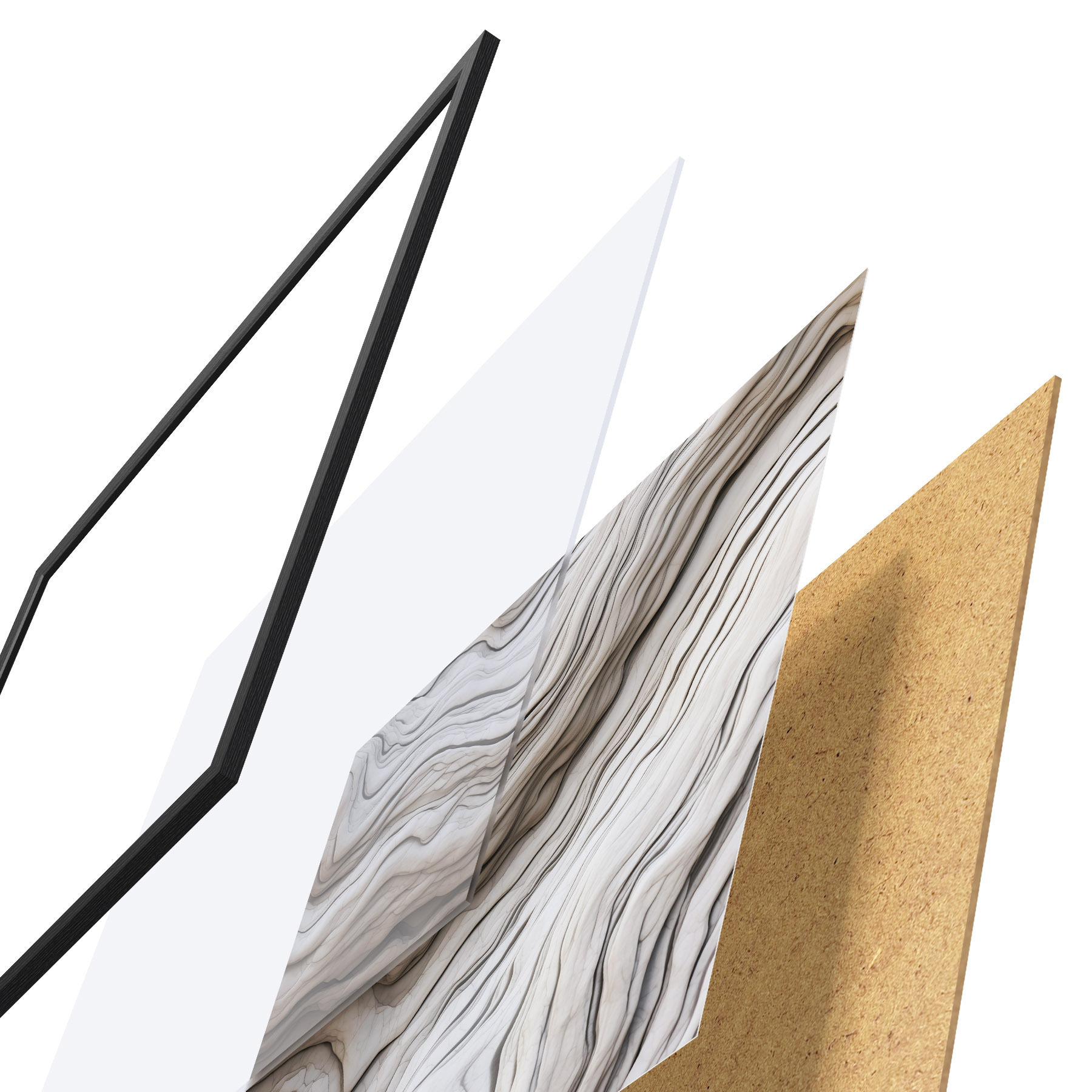 A poszter keretből, plexiből, nyomtatott képből és forgácslap hátlapból áll. A poszter a hátoldalon található rögzítőknek köszönhetően azonnal felakasztható a falra.