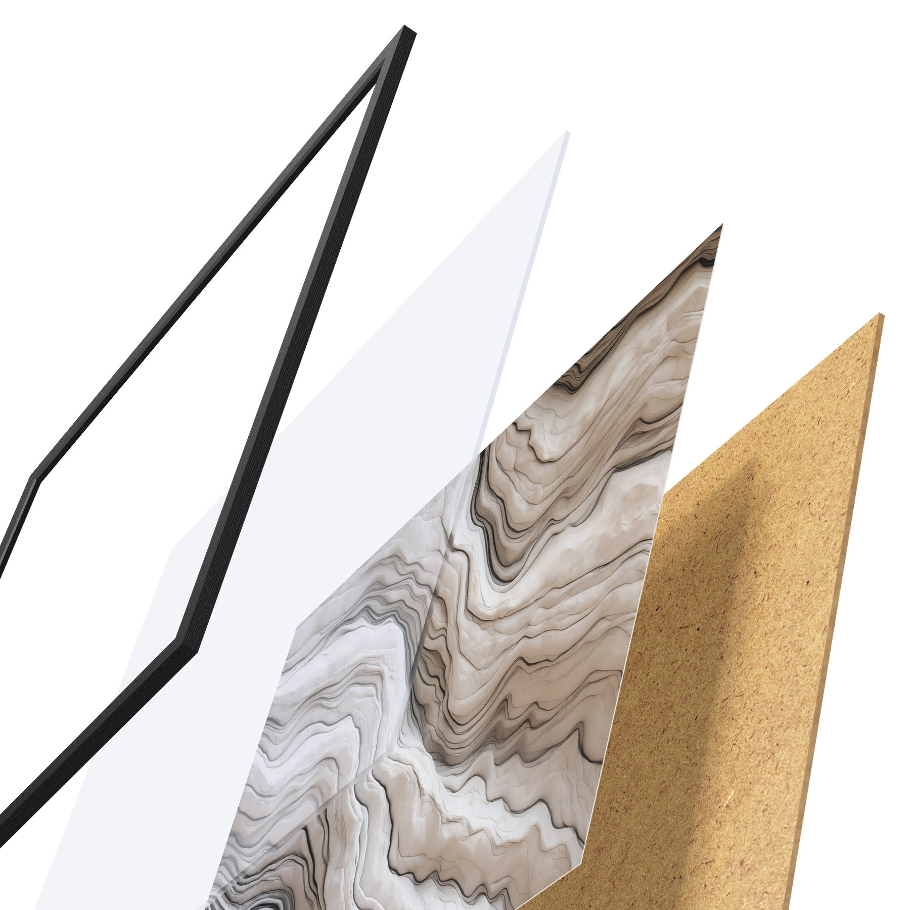 A poszter keretből, plexiből, nyomtatott képből és forgácslap hátlapból áll. A poszter a hátoldalon található rögzítőknek köszönhetően azonnal felakasztható a falra.