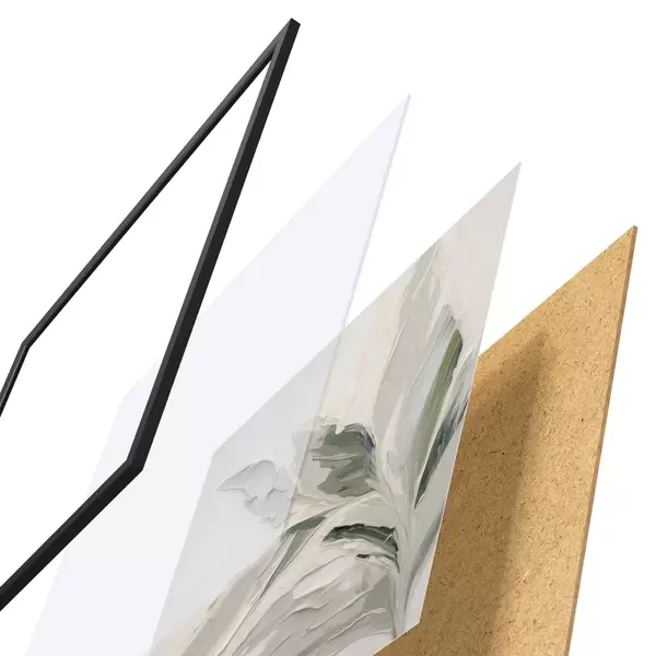 A poszter keretből, plexiből, nyomtatott képből és forgácslap hátlapból áll. A poszter a hátoldalon található rögzítőknek köszönhetően azonnal felakasztható a falra.