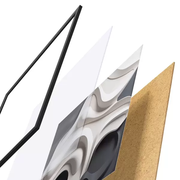 A poszter keretből, plexiből, nyomtatott képből és forgácslap hátlapból áll. A poszter a hátoldalon található rögzítőknek köszönhetően azonnal felakasztható a falra.