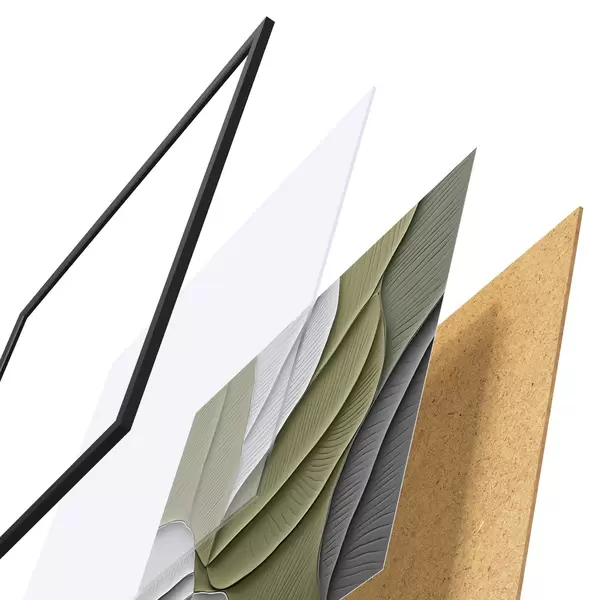 A poszter keretből, plexiből, nyomtatott képből és forgácslap hátlapból áll. A poszter a hátoldalon található rögzítőknek köszönhetően azonnal felakasztható a falra.
