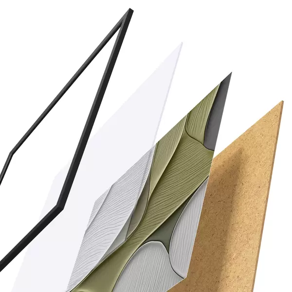 A poszter keretből, plexiből, nyomtatott képből és forgácslap hátlapból áll. A poszter a hátoldalon található rögzítőknek köszönhetően azonnal felakasztható a falra.