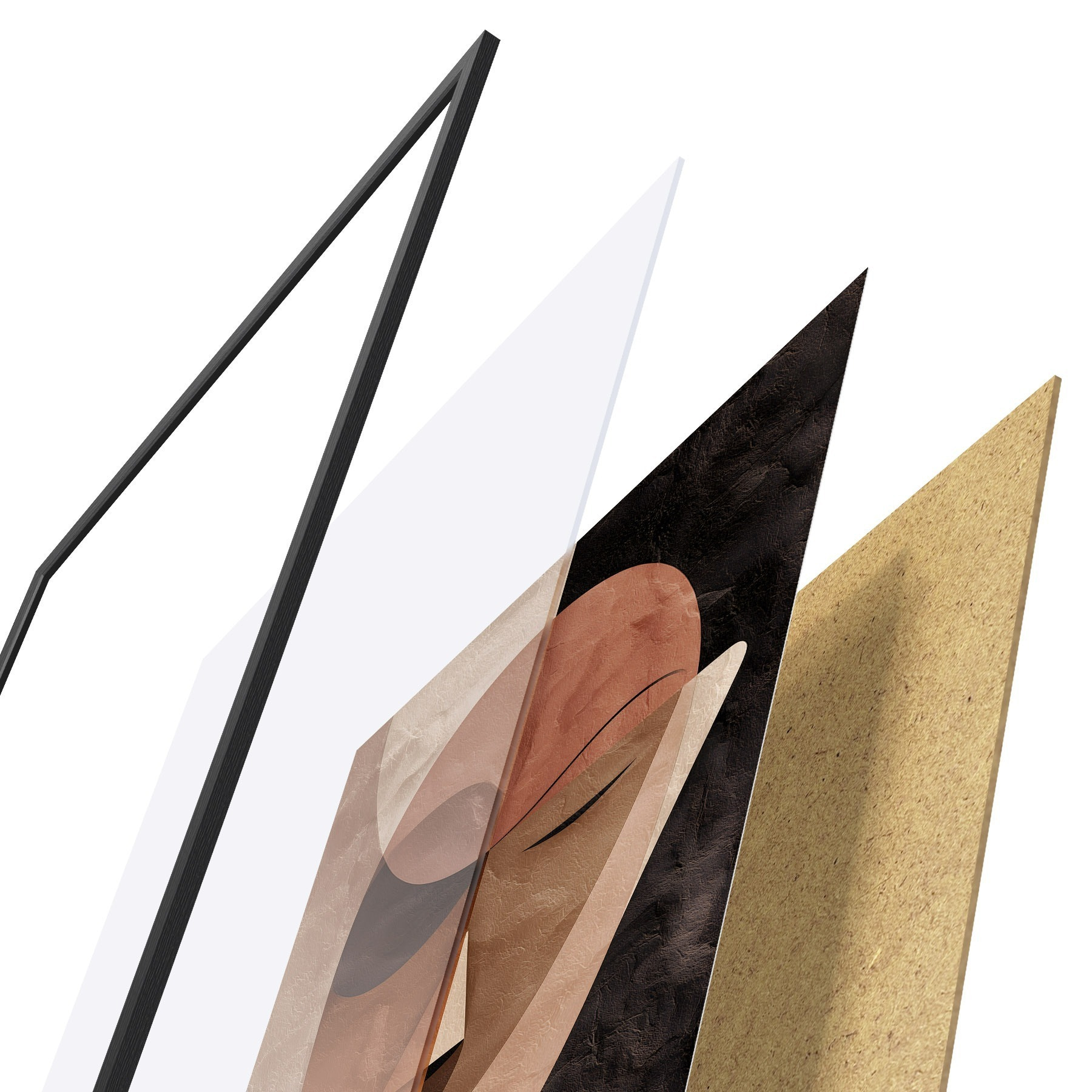 A poszter keretből, plexiből, nyomtatott képből és forgácslap hátlapból áll. A poszter a hátoldalon található rögzítőknek köszönhetően azonnal felakasztható a falra.