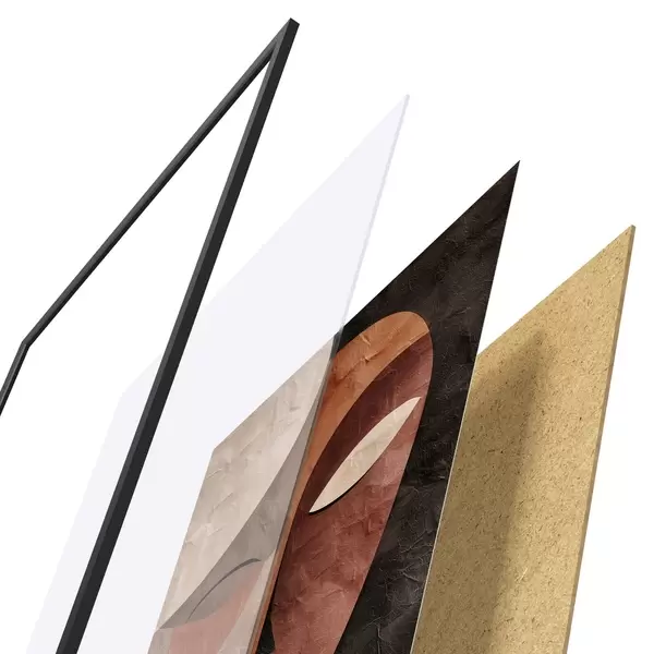 A poszter keretből, plexiből, nyomtatott képből és forgácslap hátlapból áll. A poszter a hátoldalon található rögzítőknek köszönhetően azonnal felakasztható a falra.