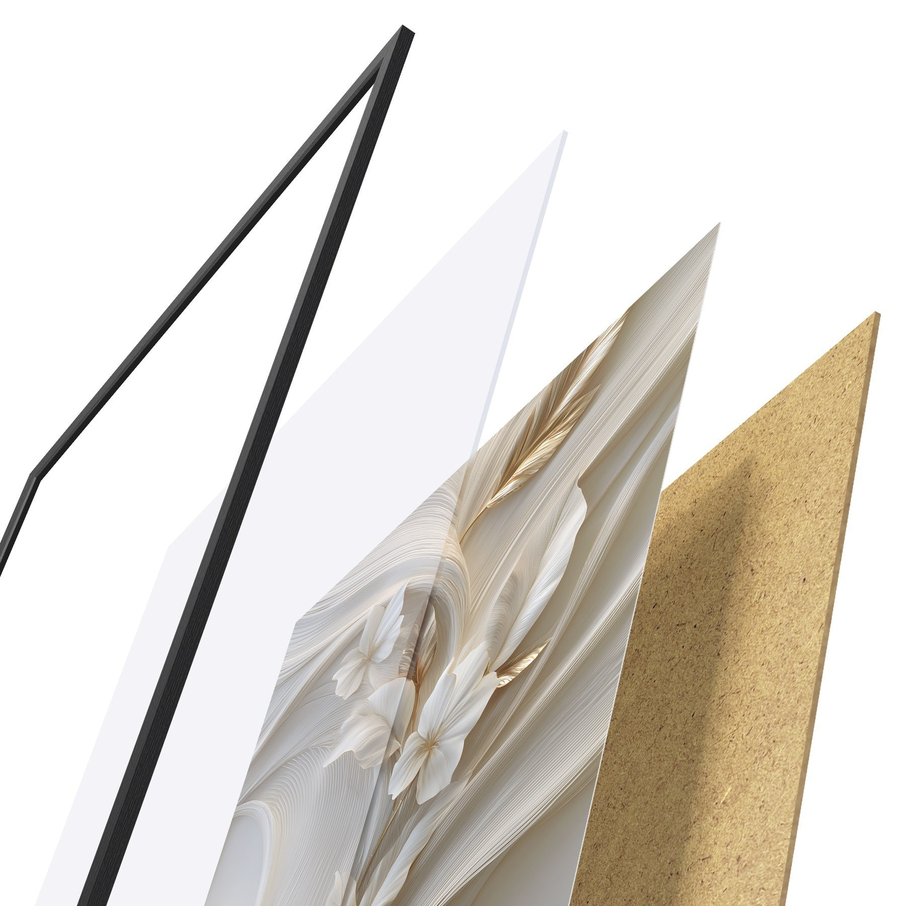 A poszter keretből, plexiből, nyomtatott képből és forgácslap hátlapból áll. A poszter a hátoldalon található rögzítőknek köszönhetően azonnal felakasztható a falra.