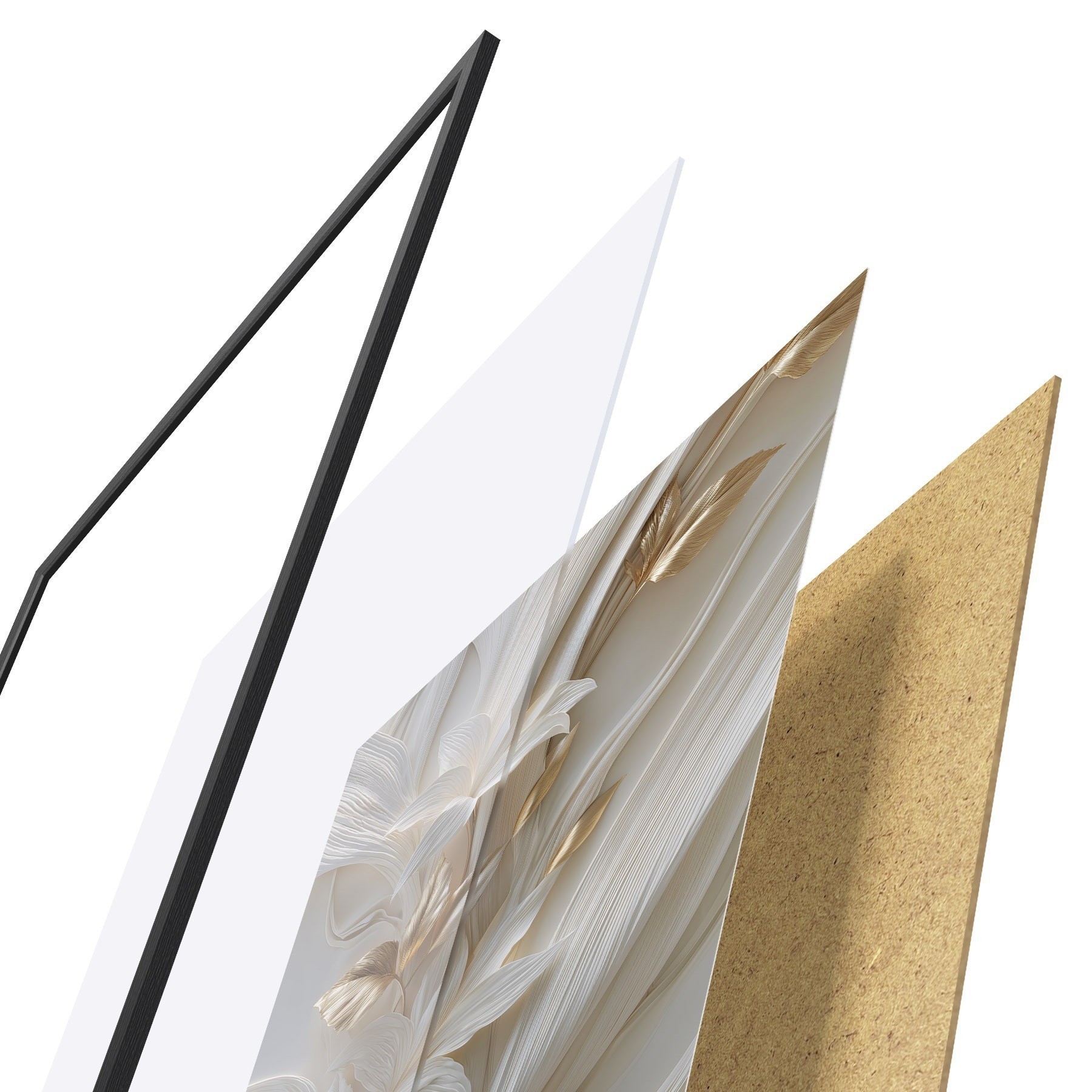 A poszter keretből, plexiből, nyomtatott képből és forgácslap hátlapból áll. A poszter a hátoldalon található rögzítőknek köszönhetően azonnal felakasztható a falra.