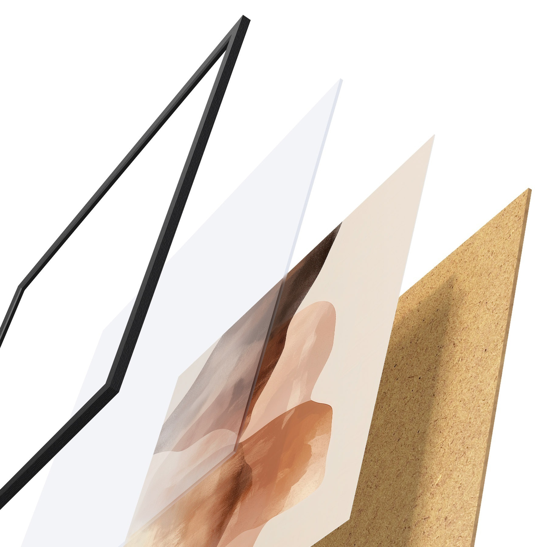 A poszter keretből, plexiből, nyomtatott képből és forgácslap hátlapból áll. A poszter a hátoldalon található rögzítőknek köszönhetően azonnal felakasztható a falra.
