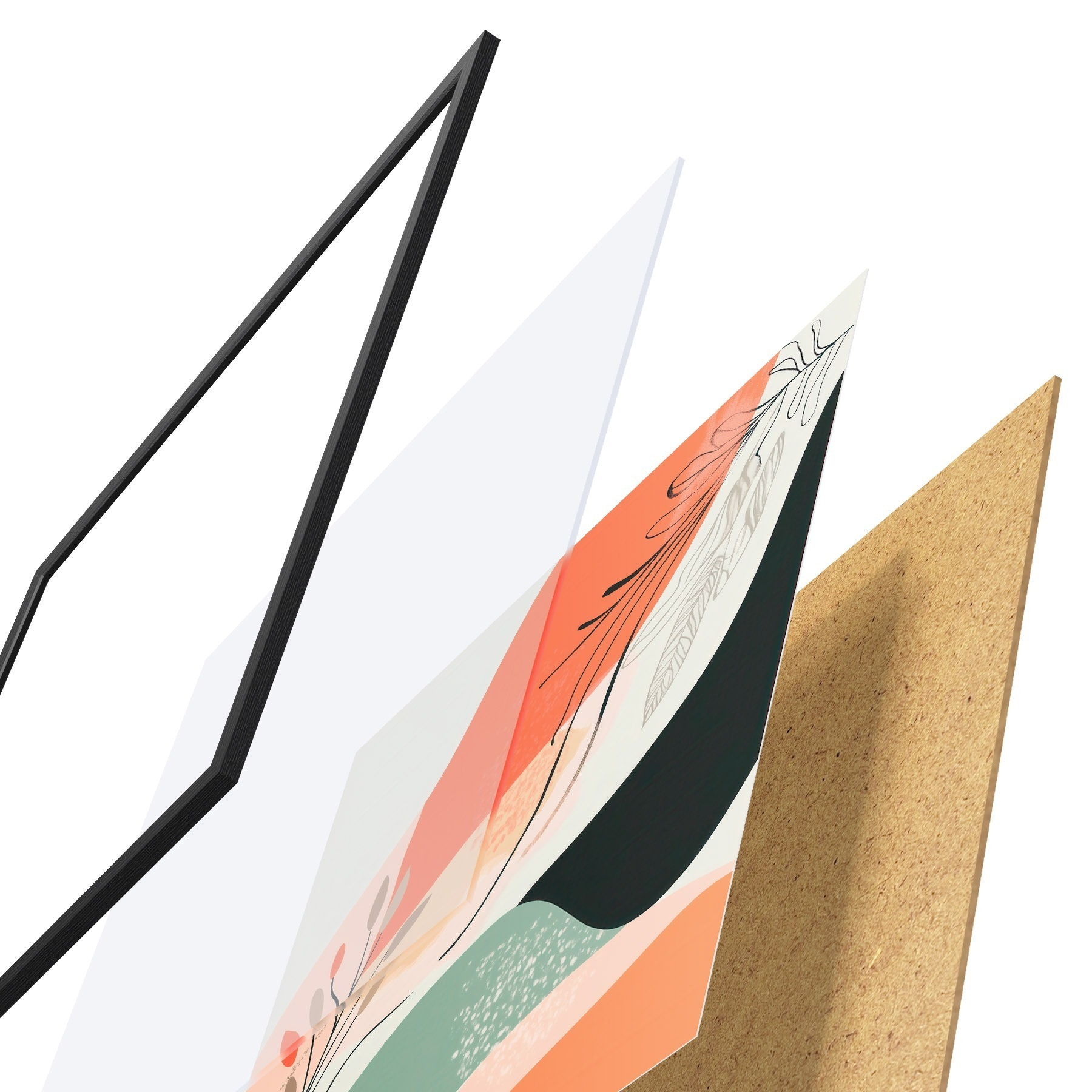 A poszter keretből, plexiből, nyomtatott képből és forgácslap hátlapból áll. A poszter a hátoldalon található rögzítőknek köszönhetően azonnal felakasztható a falra.