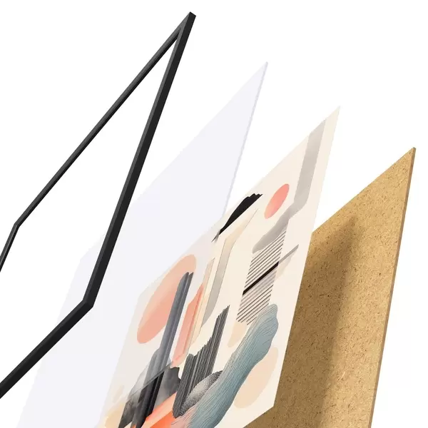 A poszter keretből, plexiből, nyomtatott képből és forgácslap hátlapból áll. A poszter a hátoldalon található rögzítőknek köszönhetően azonnal felakasztható a falra.