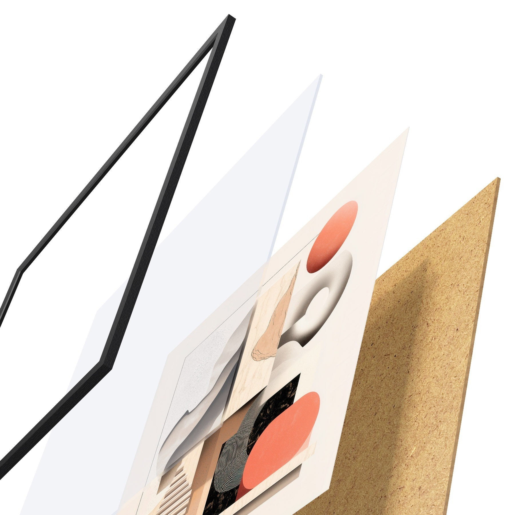A poszter keretből, plexiből, nyomtatott képből és forgácslap hátlapból áll. A poszter a hátoldalon található rögzítőknek köszönhetően azonnal felakasztható a falra.