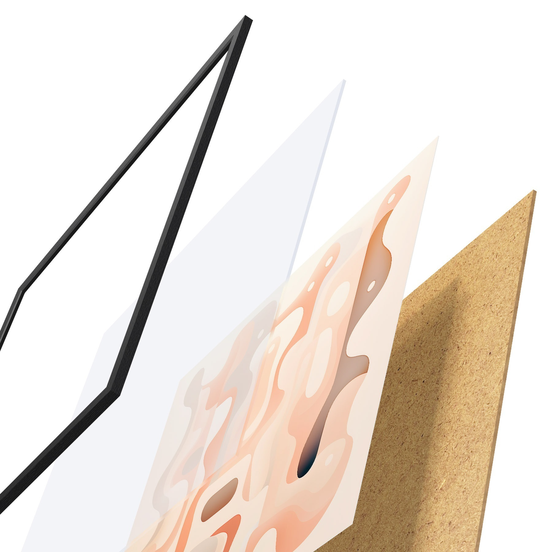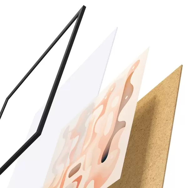 A poszter keretből, plexiből, nyomtatott képből és forgácslap hátlapból áll. A poszter a hátoldalon található rögzítőknek köszönhetően azonnal felakasztható a falra.