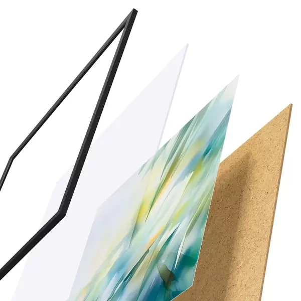 A poszter keretből, plexiből, nyomtatott képből és forgácslap hátlapból áll. A poszter a hátoldalon található rögzítőknek köszönhetően azonnal felakasztható a falra.