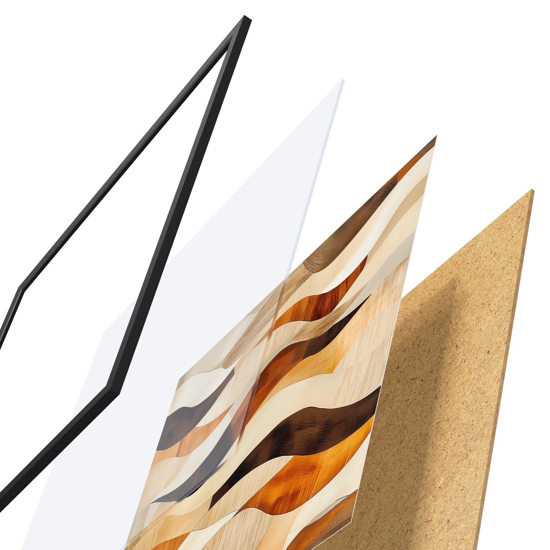 A poszter keretből, plexiből, nyomtatott képből és forgácslap hátlapból áll. A poszter a hátoldalon található rögzítőknek köszönhetően azonnal felakasztható a falra.