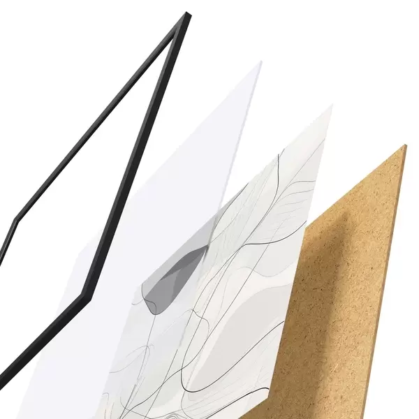 A poszter keretből, plexiből, nyomtatott képből és forgácslap hátlapból áll. A poszter a hátoldalon található rögzítőknek köszönhetően azonnal felakasztható a falra.