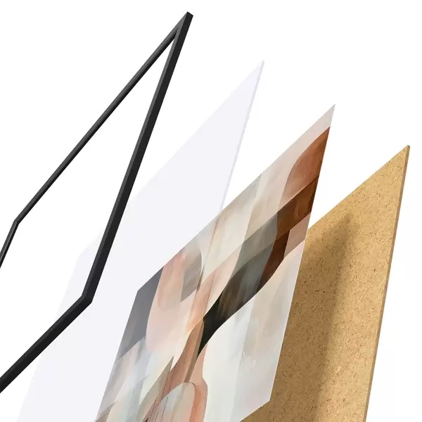 A poszter keretből, plexiből, nyomtatott képből és forgácslap hátlapból áll. A poszter a hátoldalon található rögzítőknek köszönhetően azonnal felakasztható a falra.