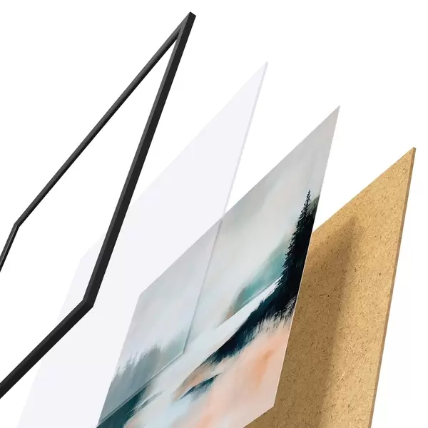 A poszter keretből, plexiből, nyomtatott képből és forgácslap hátlapból áll. A poszter a hátoldalon található rögzítőknek köszönhetően azonnal felakasztható a falra.