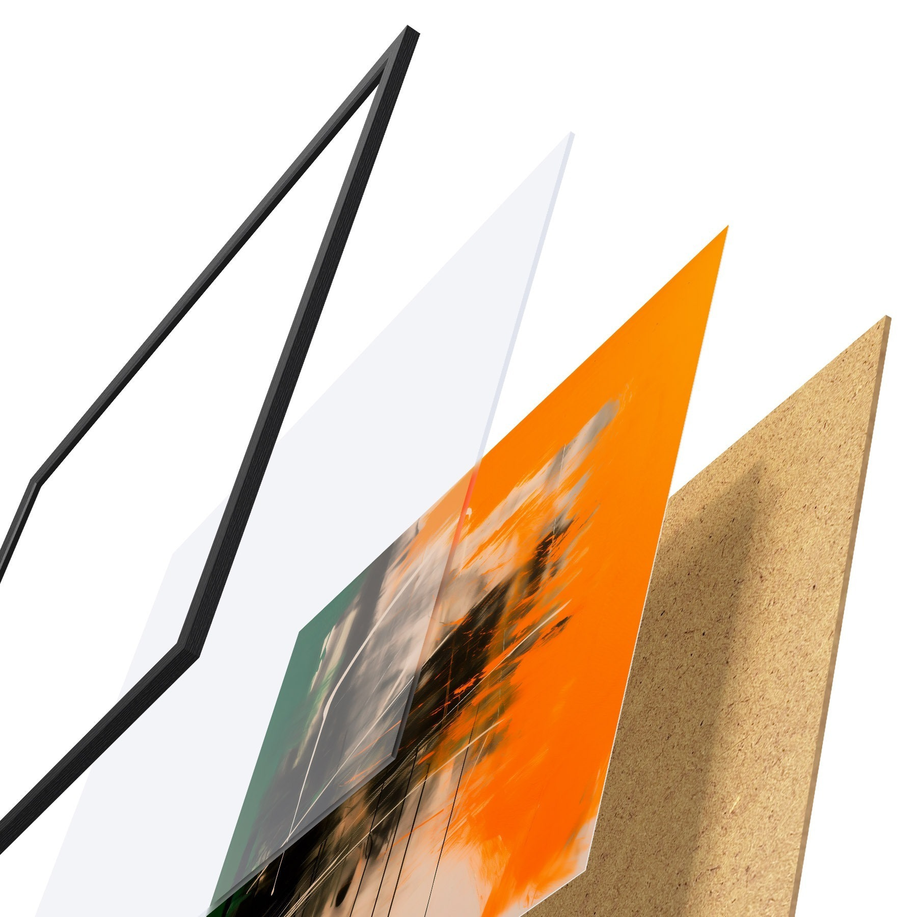 A poszter keretből, plexiből, nyomtatott képből és forgácslap hátlapból áll. A poszter a hátoldalon található rögzítőknek köszönhetően azonnal felakasztható a falra.