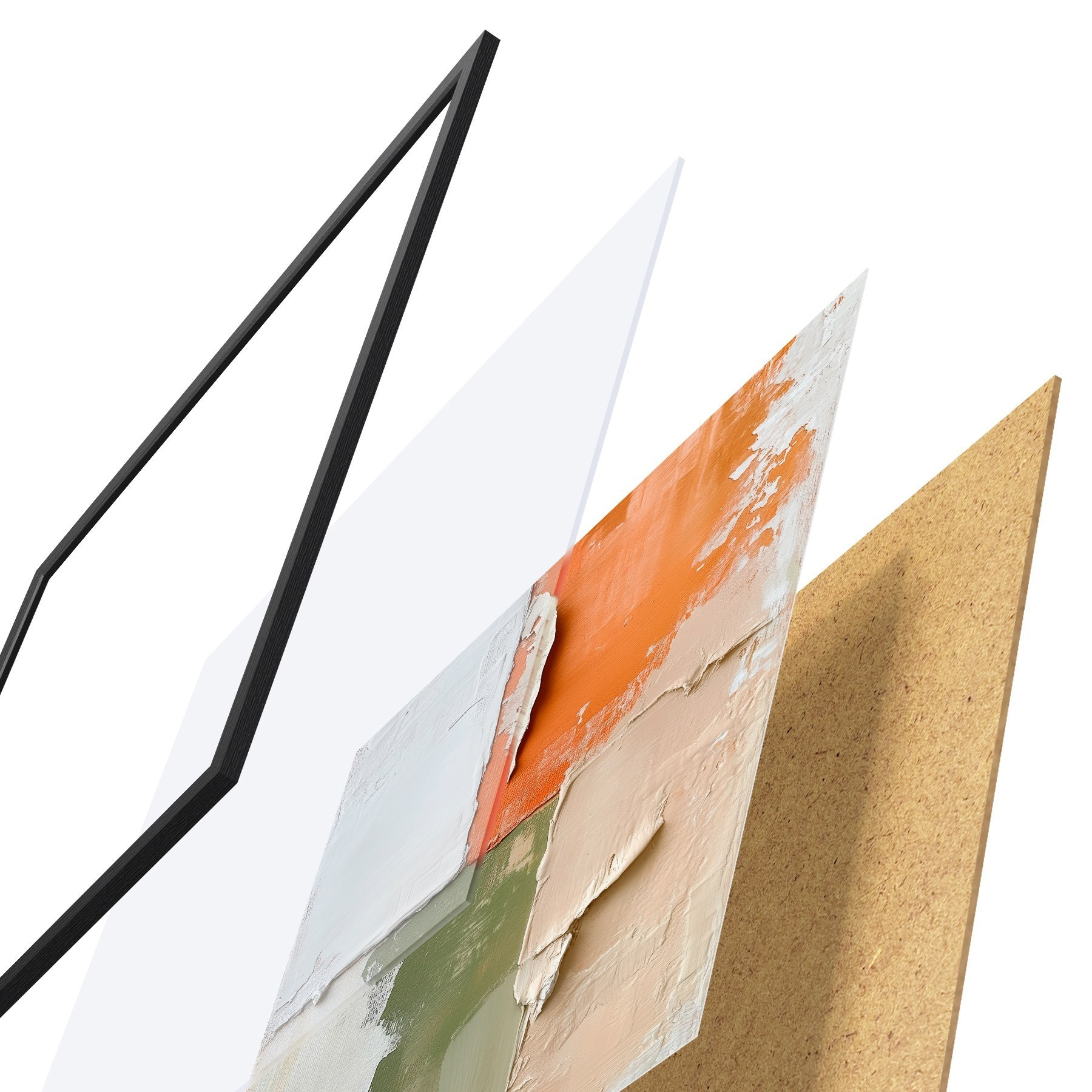 A poszter keretből, plexiből, nyomtatott képből és forgácslap hátlapból áll. A poszter a hátoldalon található rögzítőknek köszönhetően azonnal felakasztható a falra.