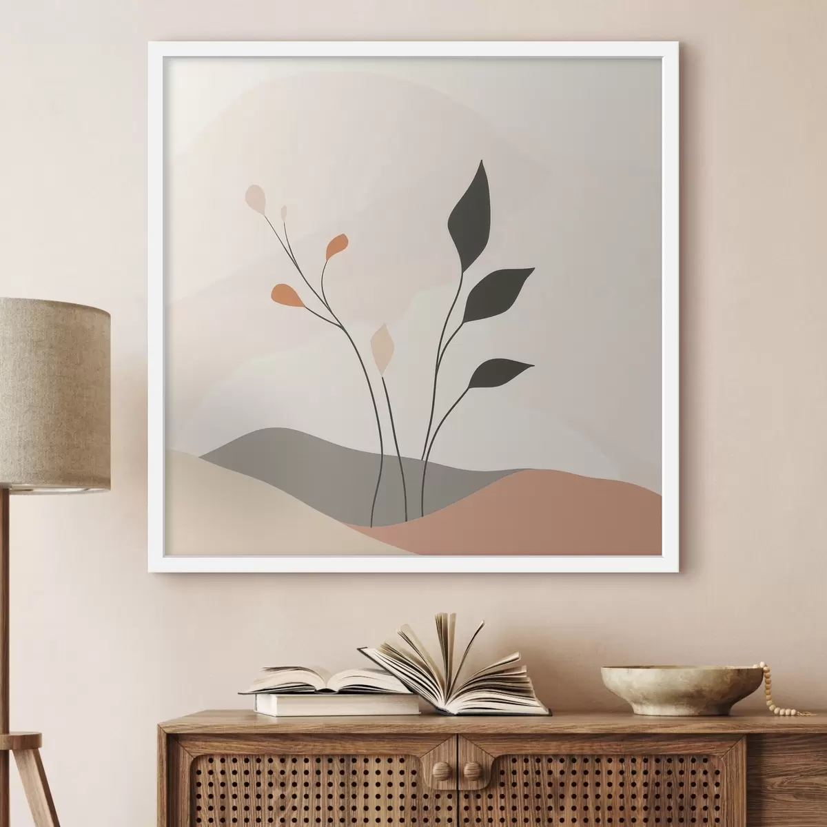 FőoldalKatalógus poszterEgyedi poszterPoster Lakonikus, növényi motívumokkal díszített jelenet organikus formákkal, kortárs művészeti stílusban Nr f48874