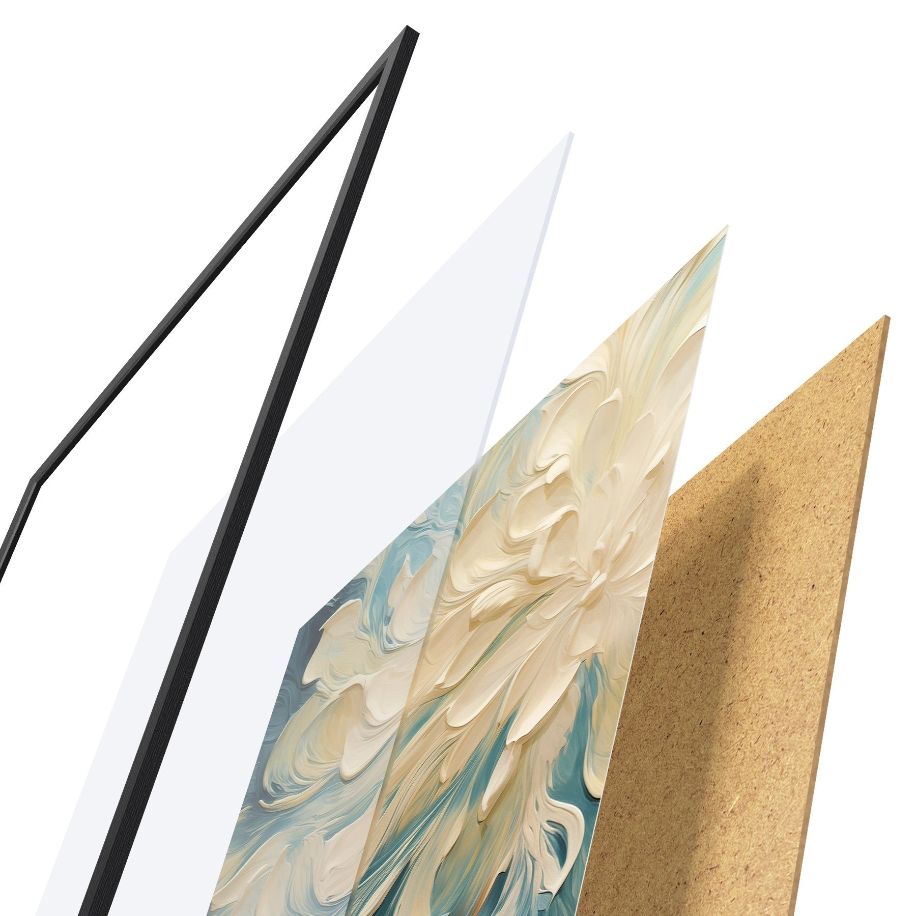 A poszter keretből, plexiből, nyomtatott képből és forgácslap hátlapból áll. A poszter a hátoldalon található rögzítőknek köszönhetően azonnal felakasztható a falra.