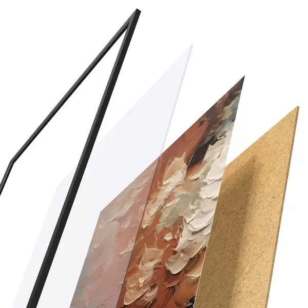 A poszter keretből, plexiből, nyomtatott képből és forgácslap hátlapból áll. A poszter a hátoldalon található rögzítőknek köszönhetően azonnal felakasztható a falra.