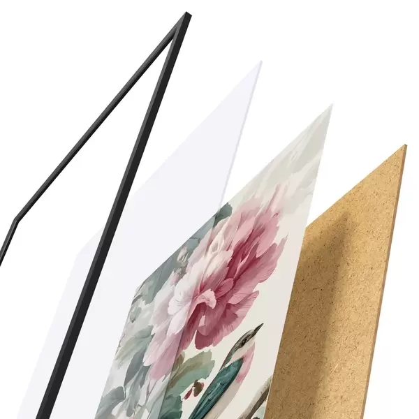 A poszter keretből, plexiből, nyomtatott képből és forgácslap hátlapból áll. A poszter a hátoldalon található rögzítőknek köszönhetően azonnal felakasztható a falra.