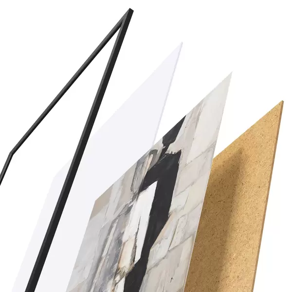 A poszter keretből, plexiből, nyomtatott képből és forgácslap hátlapból áll. A poszter a hátoldalon található rögzítőknek köszönhetően azonnal felakasztható a falra.