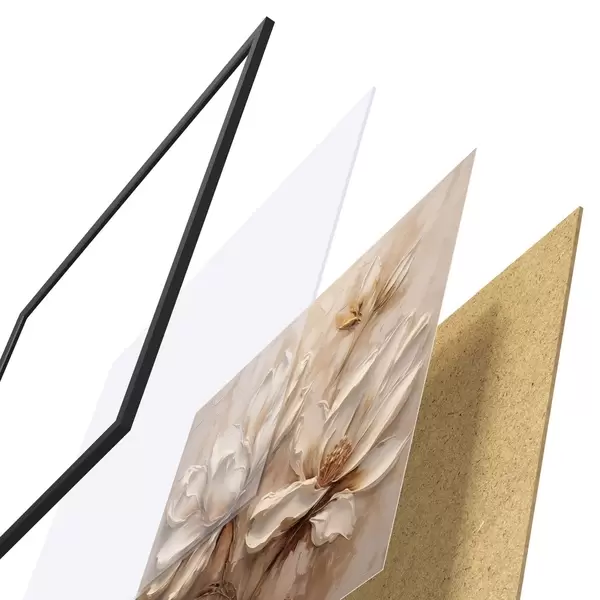 A poszter keretből, plexiből, nyomtatott képből és forgácslap hátlapból áll. A poszter a hátoldalon található rögzítőknek köszönhetően azonnal felakasztható a falra.
