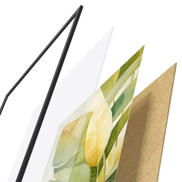 A poszter keretből, plexiből, nyomtatott képből és forgácslap hátlapból áll. A poszter a hátoldalon található rögzítőknek köszönhetően azonnal felakasztható a falra.