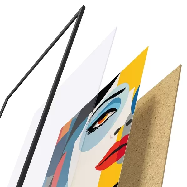 A poszter keretből, plexiből, nyomtatott képből és forgácslap hátlapból áll. A poszter a hátoldalon található rögzítőknek köszönhetően azonnal felakasztható a falra.
