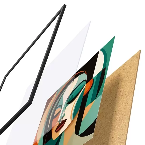 A poszter keretből, plexiből, nyomtatott képből és forgácslap hátlapból áll. A poszter a hátoldalon található rögzítőknek köszönhetően azonnal felakasztható a falra.