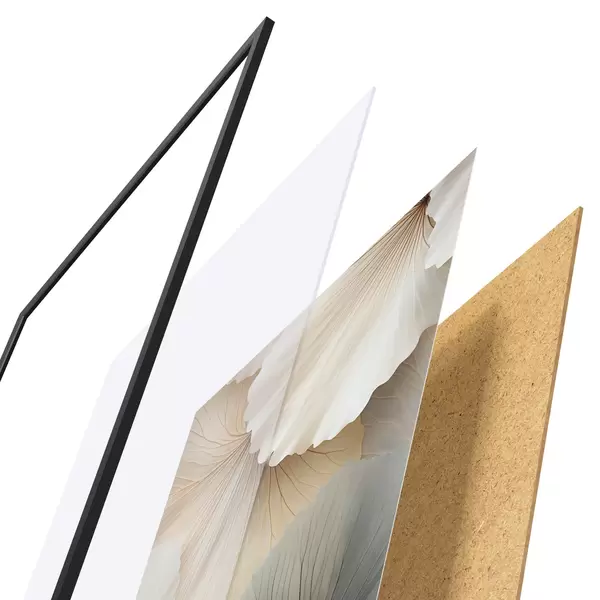A poszter keretből, plexiből, nyomtatott képből és forgácslap hátlapból áll. A poszter a hátoldalon található rögzítőknek köszönhetően azonnal felakasztható a falra.