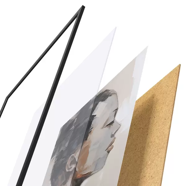 A poszter keretből, plexiből, nyomtatott képből és forgácslap hátlapból áll. A poszter a hátoldalon található rögzítőknek köszönhetően azonnal felakasztható a falra.