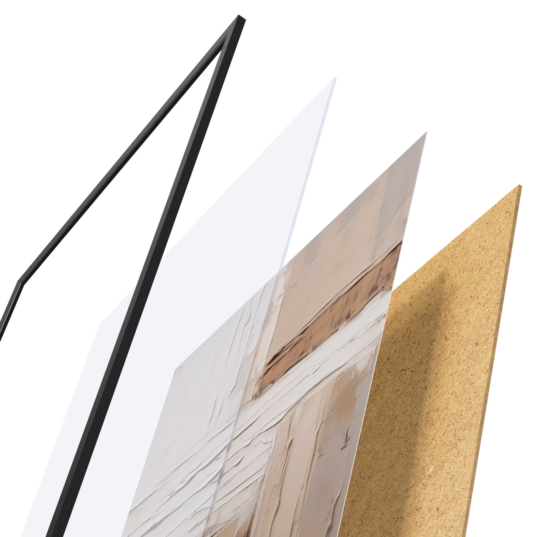 A poszter keretből, plexiből, nyomtatott képből és forgácslap hátlapból áll. A poszter a hátoldalon található rögzítőknek köszönhetően azonnal felakasztható a falra.