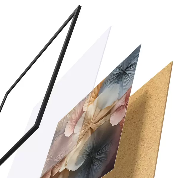 A poszter keretből, plexiből, nyomtatott képből és forgácslap hátlapból áll. A poszter a hátoldalon található rögzítőknek köszönhetően azonnal felakasztható a falra.