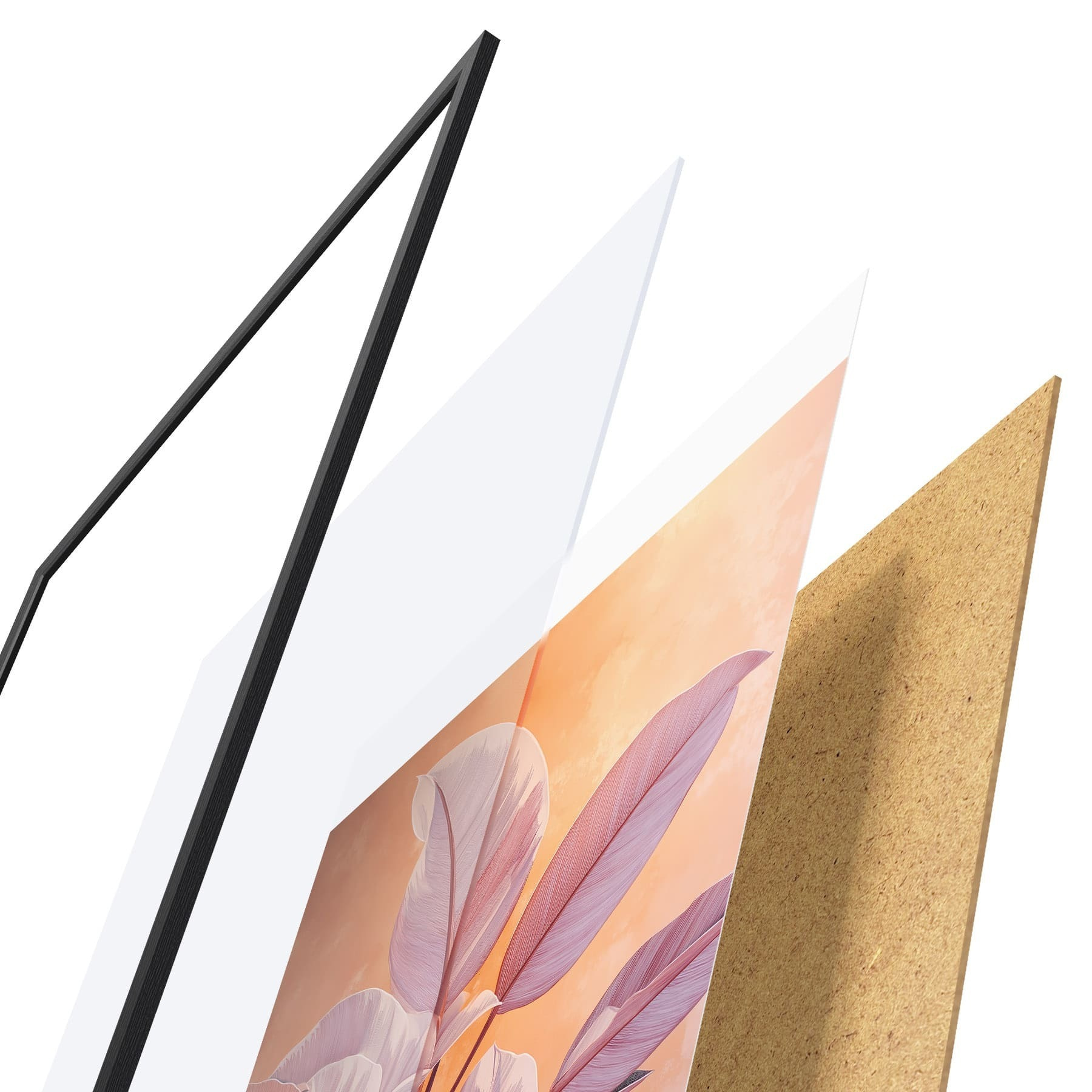 A poszter keretből, plexiből, nyomtatott képből és forgácslap hátlapból áll. A poszter a hátoldalon található rögzítőknek köszönhetően azonnal felakasztható a falra.