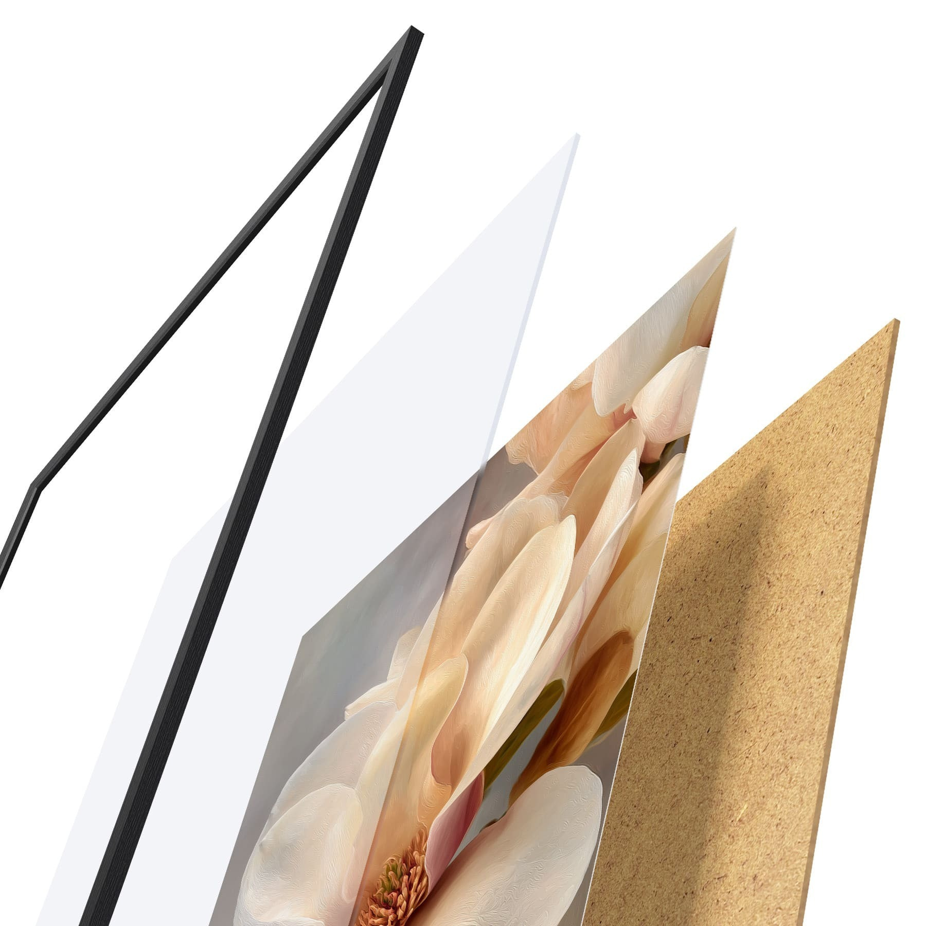A poszter keretből, plexiből, nyomtatott képből és forgácslap hátlapból áll. A poszter a hátoldalon található rögzítőknek köszönhetően azonnal felakasztható a falra.