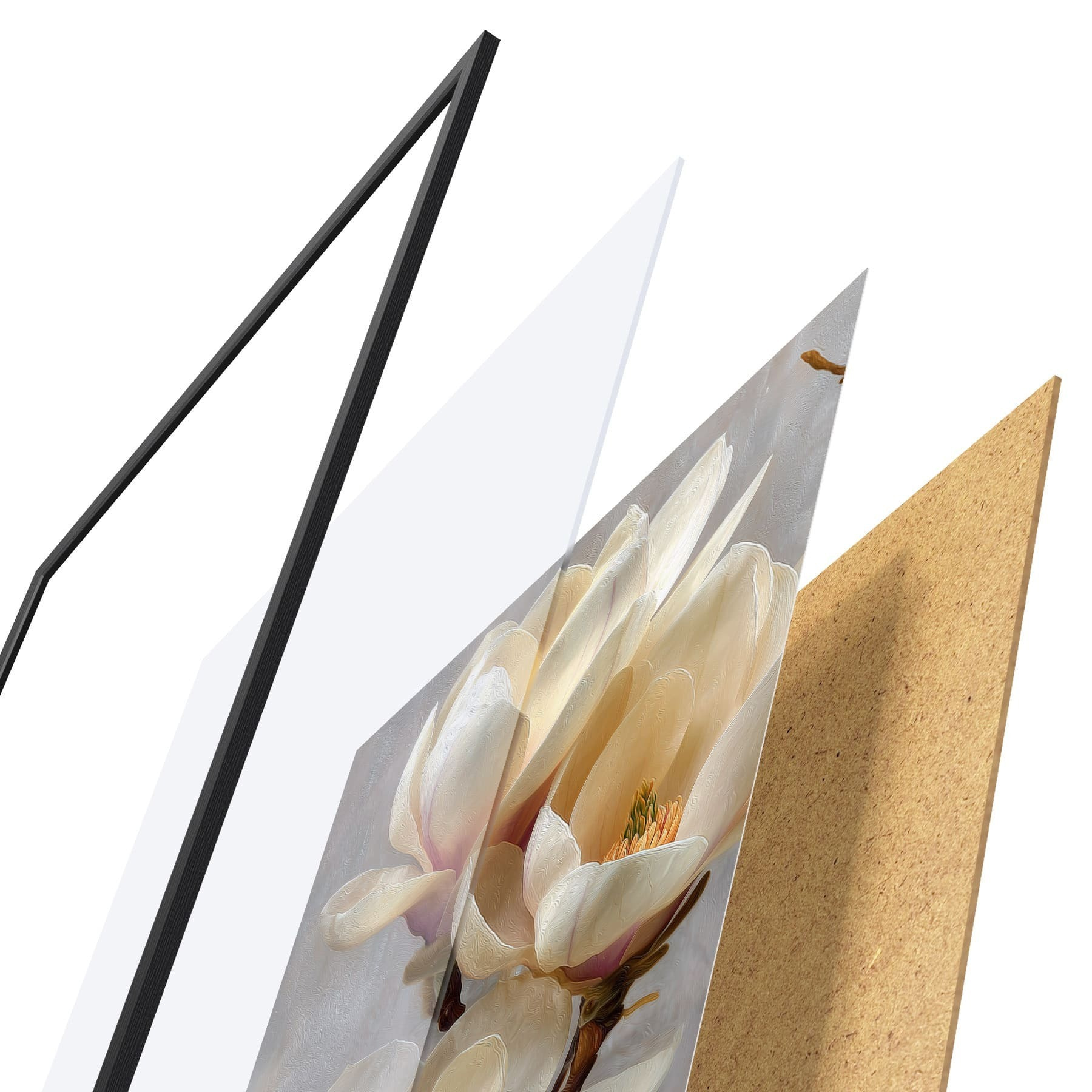 A poszter keretből, plexiből, nyomtatott képből és forgácslap hátlapból áll. A poszter a hátoldalon található rögzítőknek köszönhetően azonnal felakasztható a falra.