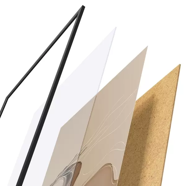 A poszter keretből, plexiből, nyomtatott képből és forgácslap hátlapból áll. A poszter a hátoldalon található rögzítőknek köszönhetően azonnal felakasztható a falra.
